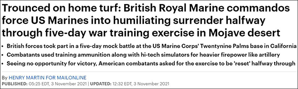 得知本國軍隊“大獲全勝”的英媒顯然大喜過望,在此前的報道中寫道:英軍“支配”了美軍、美軍“羞辱地投降”、美軍士兵據傳在演習中途要求“重開”……