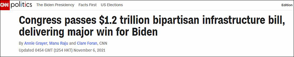 《華盛頓郵報》:國會通過了1.2萬億法案,交由拜登簽字