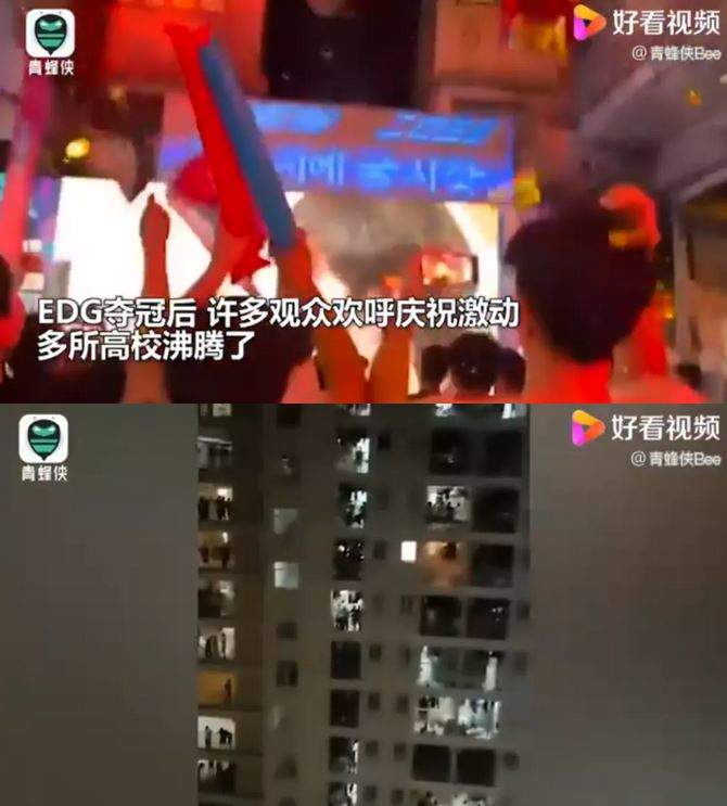 冠軍時刻的到來,讓中國的《英雄聯盟》粉絲們陷入狂歡。多地高校的男生宿舍像過年一般慶祝奪冠,高呼:EDG世界冠軍!