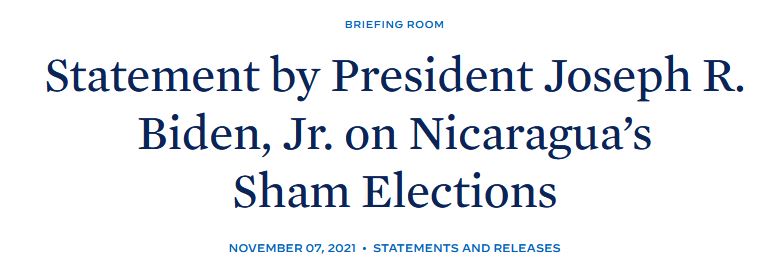 拜登聲明稱尼加拉瓜選舉是“虛假的”