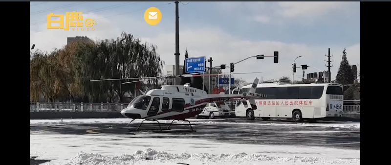 據陝西網白鹿視頻官方微博11月8日報道,11月7日,陝西榆林。暴雪天氣道路受阻,一村民意外摔倒被木棍刺破喉嚨急需手術,救援直升機僅用26分鐘便送達醫院。據該航空公司總經理稱,當時情況十分危急,村民住在山區5個小時車程都難以到達市區醫院。這是與神木市醫院合作的公益項目,自今年9月起已啓用直升機完成了9次免費院前急救。