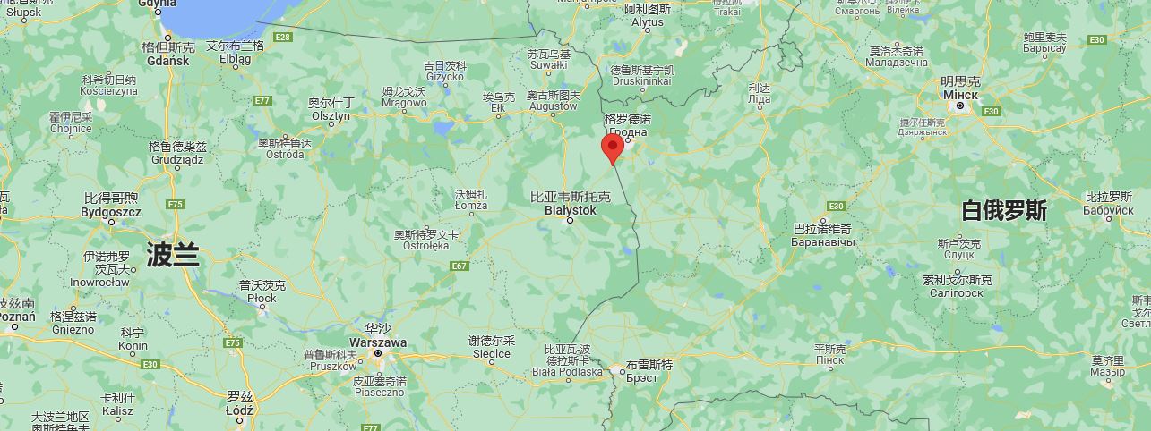波蘭和白俄羅斯邊境的庫茲尼察村 谷歌地圖