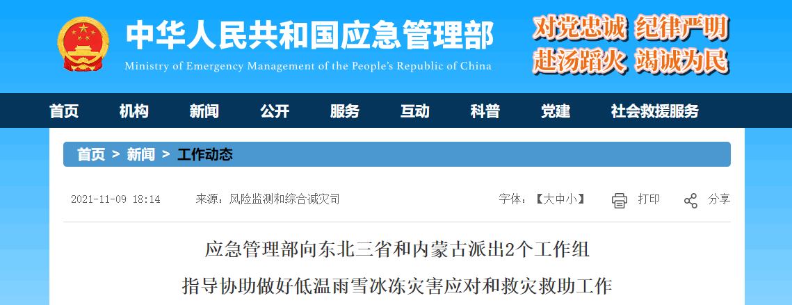 應急管理部向東北三省和內蒙古派出工作組指導救災救助等工作