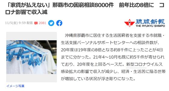 那霸市的觀光和餐飲相關從業人員極多,同時在過去的一年多時間中,那霸也爆發了很多次小型危機。這讓遊客大幅減少,也導致了大量兼職人員或個體户從業者大受打擊。