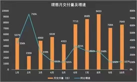 但是過去一年交付量出現滑鐵盧的不僅是10月,今年8月蔚來的車交付量從7月的7931台暴跌26%至5880台,而理想汽車8月交付量為9433輛,坐穩造車新勢力“三強”首位。