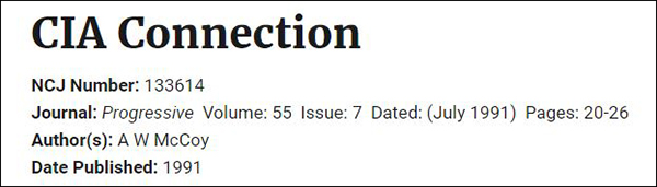 該文名為《CIA的關聯》(CIA Connection) 截圖自美國司法部司法計劃辦公室(OJP)網站