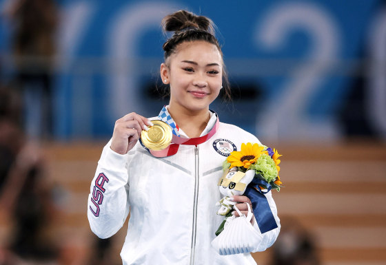 7月29日,在東京奧運會體操中心舉行的東京奧運會第六天女子全能決賽中,蘇妮·李獲得金牌。資料圖自美國全國廣播公司