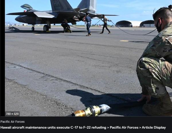 美軍正在演練從C-17直接向F-22提供燃油