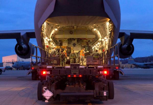 正在裝載物資準備支援快速猛禽演習的C-17,當時尚未進行改裝
