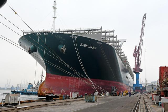 在青島修了一個多月,曾擱淺蘇伊士運河的“長賜”號重新起航