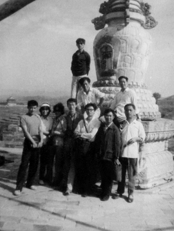 1980年,《天書奇譚》部分主創在河北承德外八廟收集創作資料。前排右一王樹忱,右二錢運達,右三馬克宣,高處為秦一真。 圖片來源:澎湃新聞