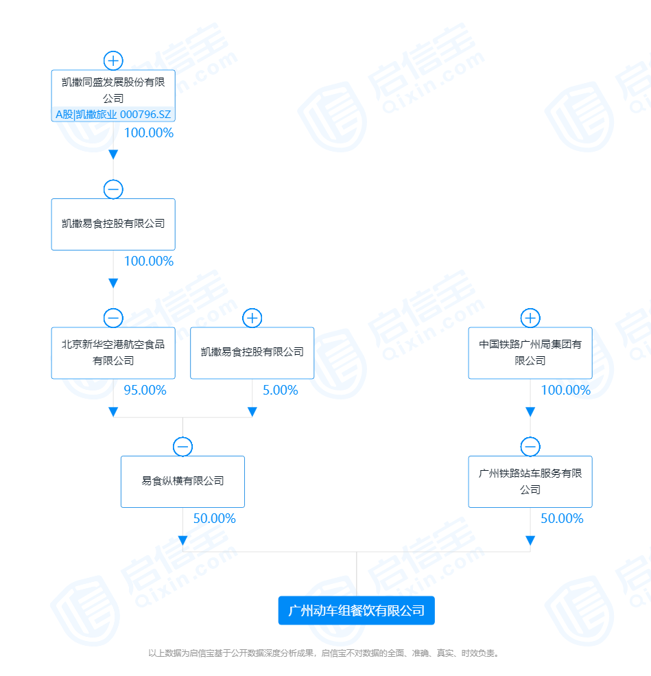 啓信寶顯示,此次推出高鐵奶茶的廣州動車組餐飲有限公司,廣州鐵路站車服務有限公司與易食縱橫有限公司分別持股50%。
