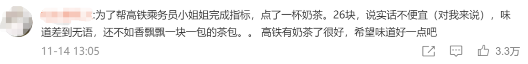 高鐵上也能喝到現做的奶茶了,11月14日,“高鐵奶茶已上線”登上熱搜榜第一。