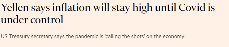在14日的CBS“面對國家”(Face the Nation)欄目中,耶倫把美國創紀錄的通貨膨脹增長歸咎於新冠疫情。