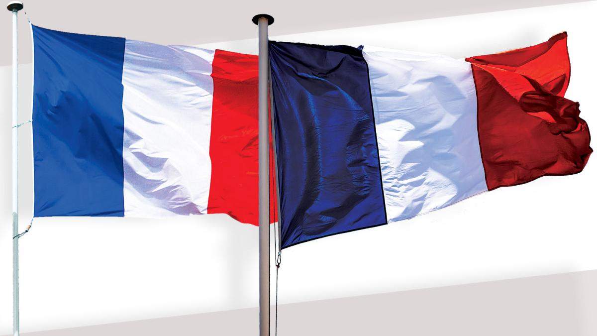 兩種法國國旗顏色對比,左邊為鈷藍色,右邊為海軍藍