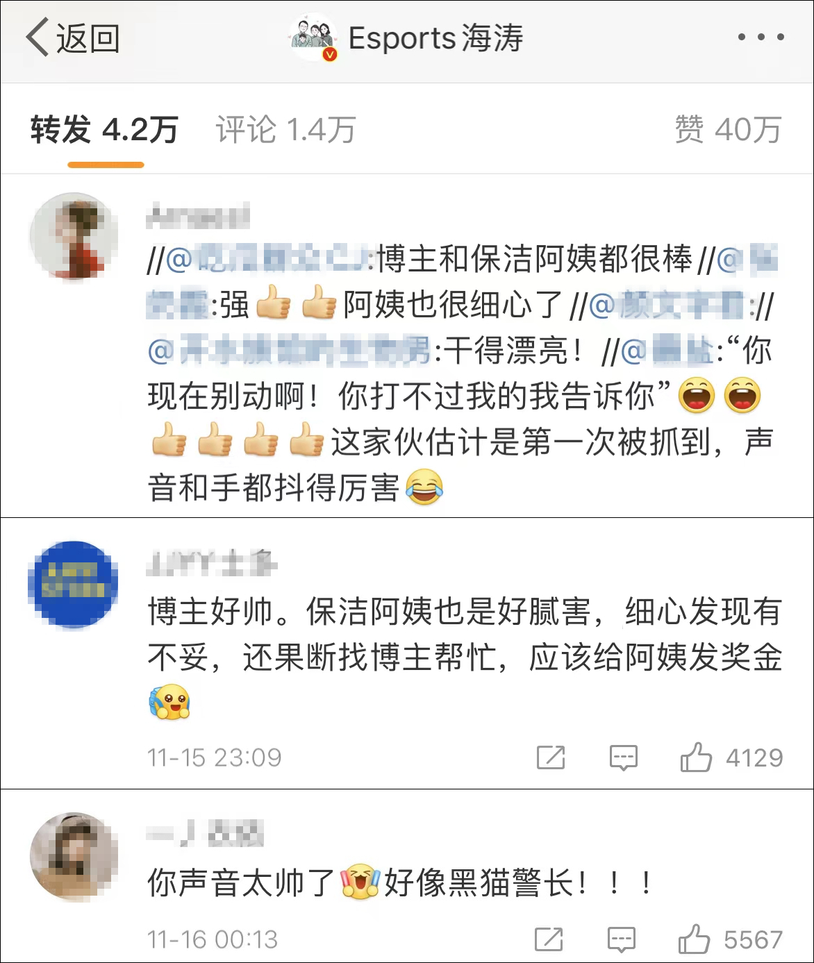 截至16日16點,這條博文的轉發量已經達到4.4萬次,有42.4萬人點贊,許多網友在留言中讚揚他的見義勇為。