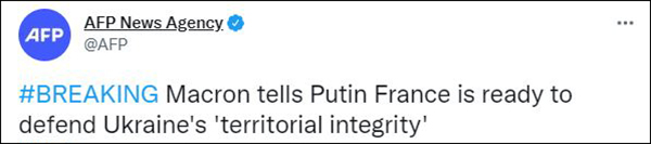 馬克龍向普京表示“法國準備捍衞烏克蘭領土完整”