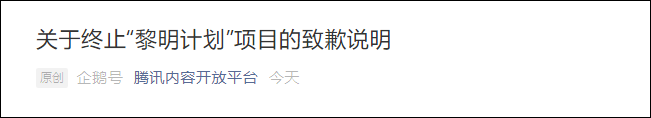 “黎明計劃”的初衷是,在得到創作者的授權前提下,鼓勵MCN機構邀請創作者入駐並幫助創作者運營,讓創作者在騰訊各內容平台獲得收益。但由於該計劃在執行過程中管理不嚴,加上該計劃在部分產品設計上也不完善,導致了不少問題,我們決定終止“黎明計劃”項目。