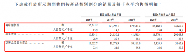 近幾年,衞龍各類產品的平均售價逐年上漲。招股書顯示,調味面製品產品從2018年的13.9元/千克上漲至2020年的15元/千克;豆製品及其他產品則從2018年的22.4元/千克漲至2021年上半年的29.7元/千克。