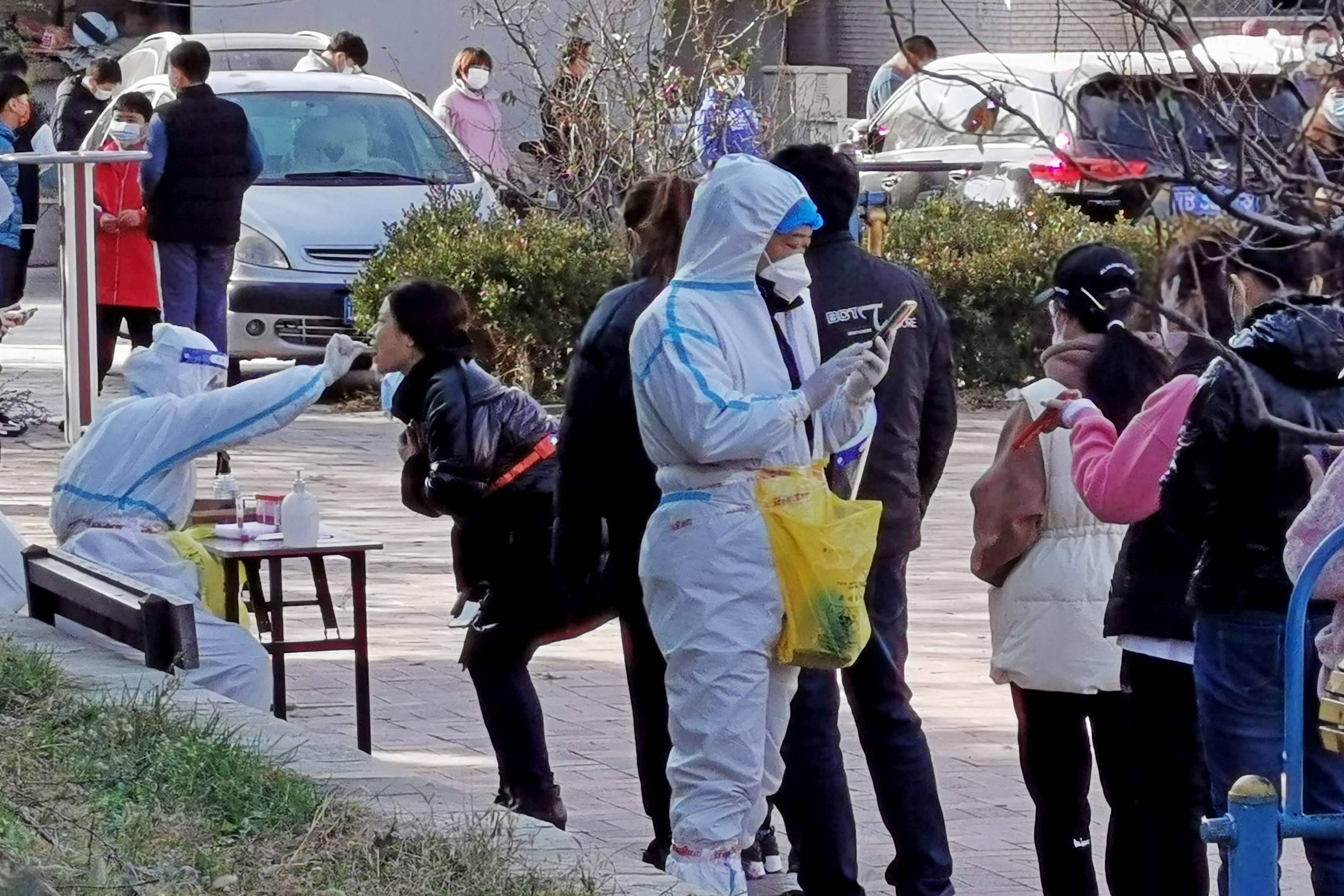 2021年11月16日,遼寧省大連市甘井子區泉水街道龍鑫社區居民在做第四次核酸檢測。圖源:澎湃影像