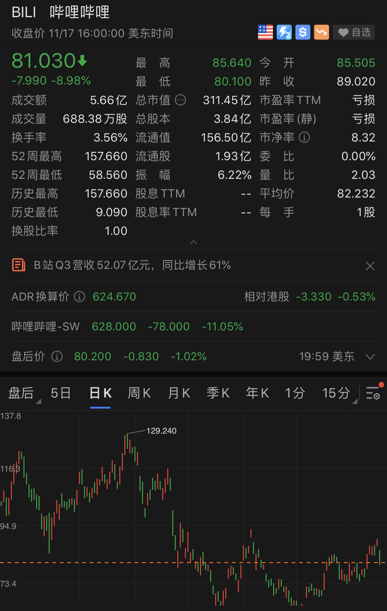 11月17日晚間,嗶哩嗶哩(下稱:B站)披露2021年三季報。
