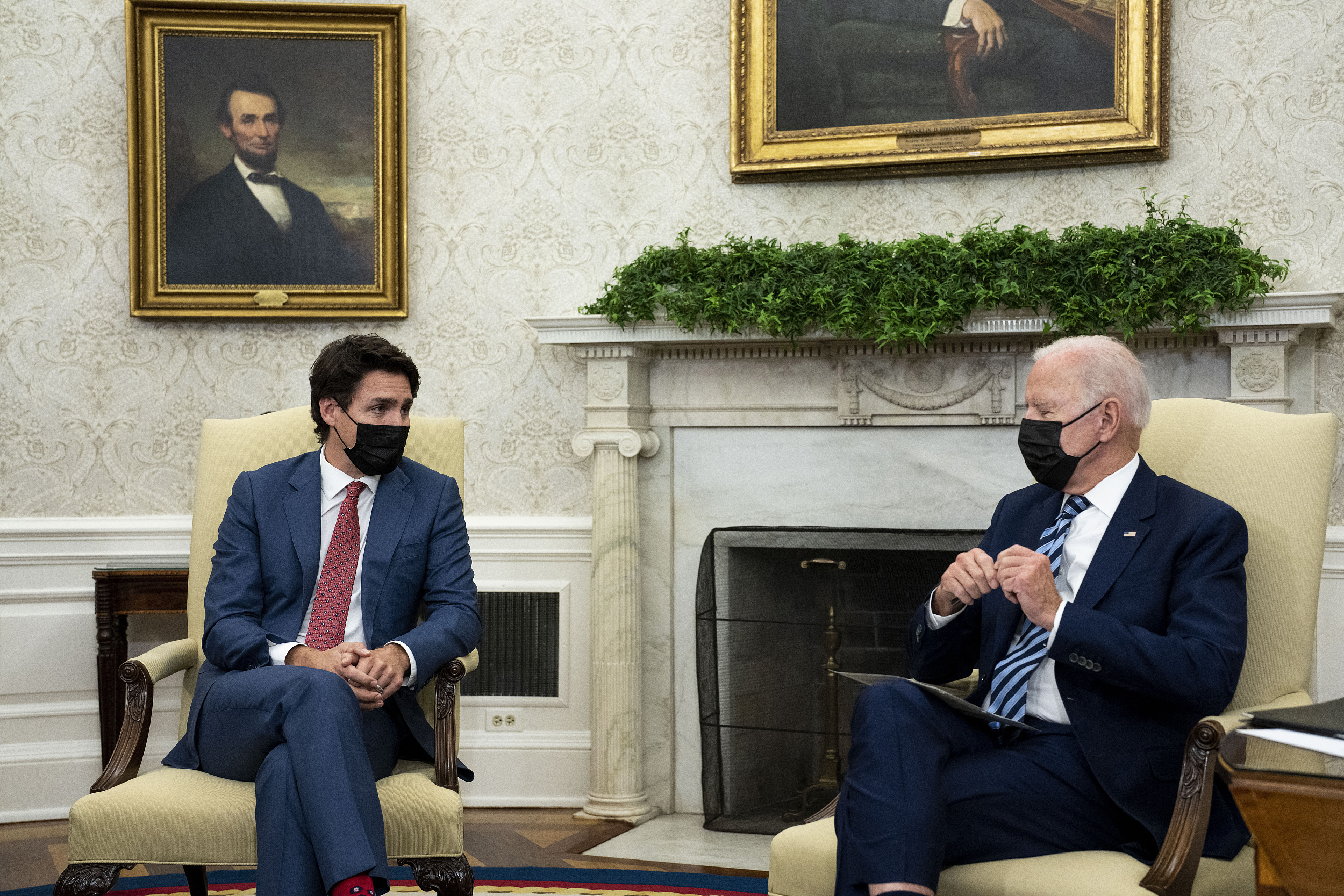 當地時間11月18日,美國總統拜登(右)與到訪白宮的加拿大總理特魯多會面 圖源:視覺中國