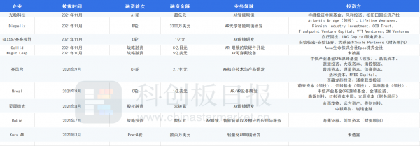 今年以來AR眼鏡的融資情況(《科創板日報》不完全統計)