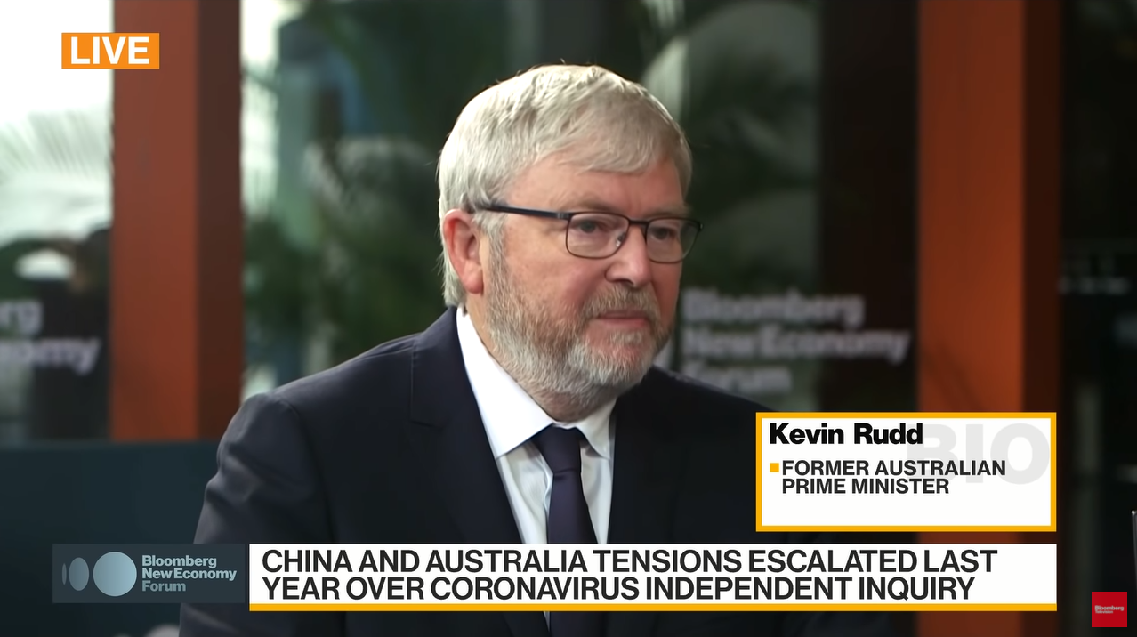 當地時間11月19日,曾任澳大利亞工黨領袖、澳大利亞外交部長、總理等要職的陸克文,在新加坡參加“彭博創新經濟論壇(Bloomberg New Economy Forum)”時表示,近期中美元首的會晤猶如一次“技術暫停”,使緊張的兩國關係暫時穩定,對於更廣泛的地區來説也是好消息,這使得地緣政治温度下降了一兩個檔次。