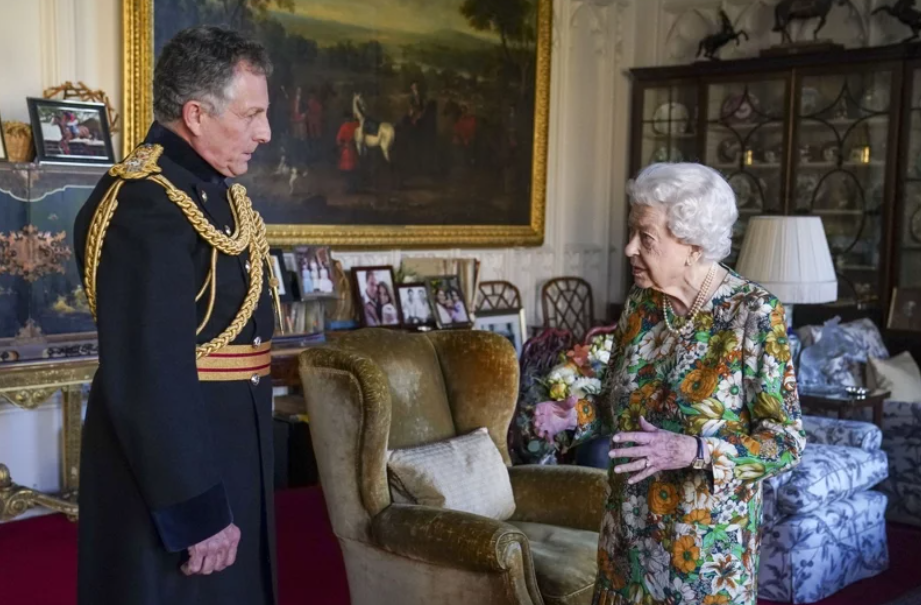 英媒報道稱,女王目前已恢復健康,可以“輕鬆履行職責。”在當天的會見中,女王身穿綠、白、橙三色相間的碎花連衣裙,向國防參謀長微笑致意。