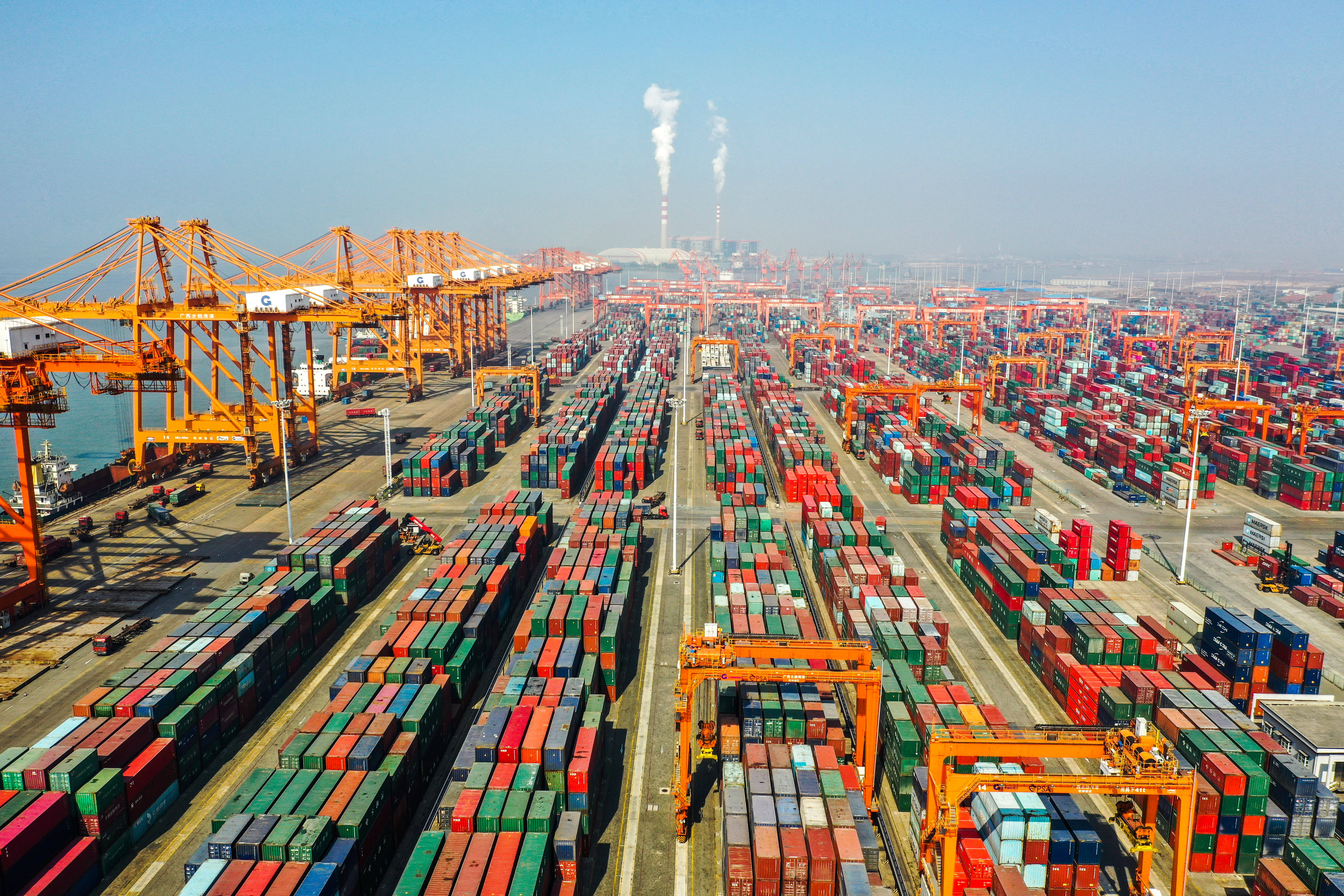 這是廣西欽州港集裝箱碼頭(無人機照片,1月14日攝)。