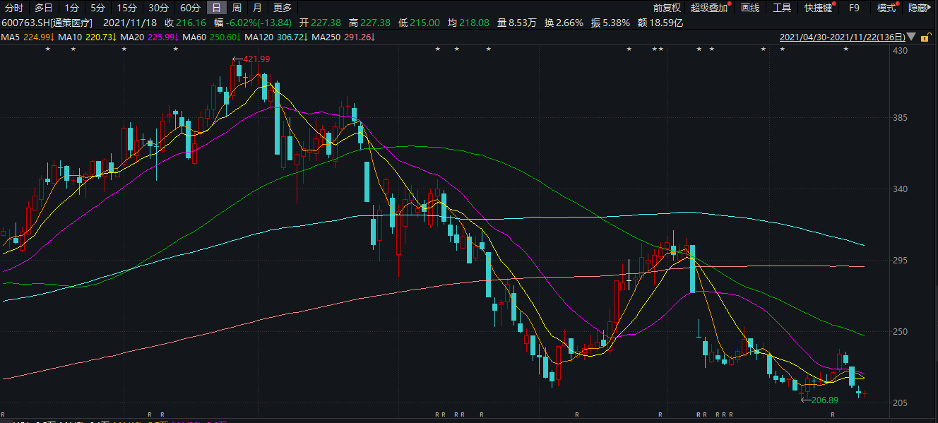 截止今日14時36分18秒,通策醫療報每股210.99元,其市值來到677億區間,相較於歷史高位,“牙茅”幾乎“腰斬”。