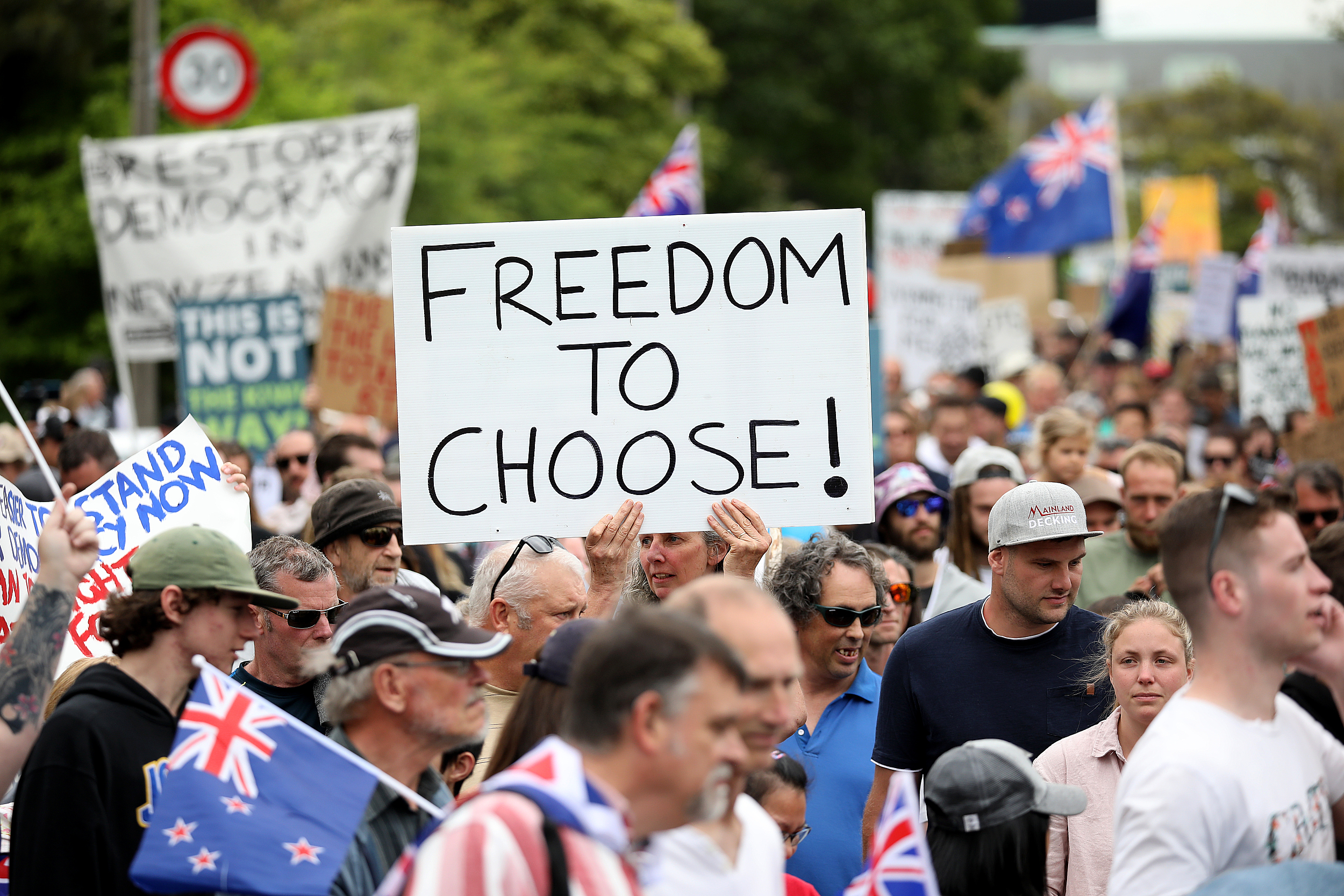 新西蘭民眾20日進行遊行,反對政府強制接種新冠疫苗 圖自視覺中國