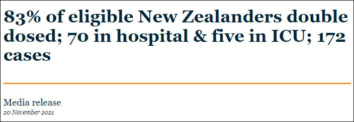 據新西蘭衞生部數據顯示,截至22日下午1時,新西蘭新冠肺炎累計確診病例達10176例,累計死亡病例40例。在截至22日中午的前24小時裏,新西蘭全國新增205例本土新冠肺炎確診患者,患者主要集中在奧克蘭。在該國五百多萬總人口中,至本月20日已有83%適宜接種疫苗的民眾接種了兩劑新冠疫苗。