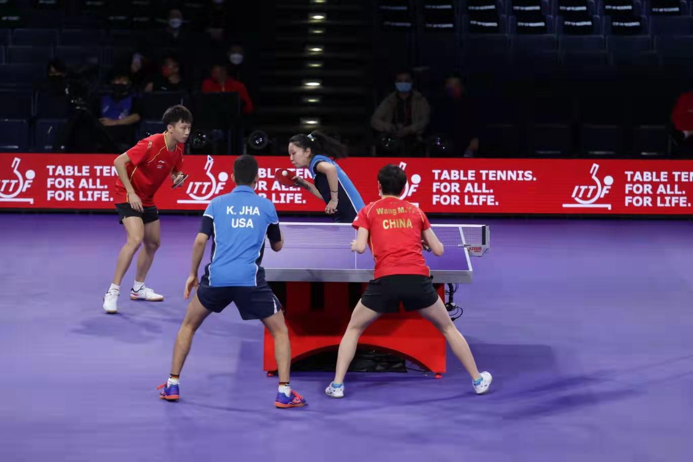 CGTN記者韓鵬錄製的中美乒乓球聯隊訓練視頻