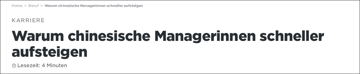 洛温斯基奇還談到,最近,一位來自中國的高管告訴她,在歐洲提拔年輕女性有多麼困難,因為有些人只想過平靜的家庭生活。許多中國女性無法理解這一點。平均而言,她們比歐洲人更渴望成功。目前這一代的中國高管見證了中國的改革開放,這也起到了一定的作用,(他們)在一開始的時候就必須為繁榮而奮鬥。在富裕環境中長大的年輕人也在向上發展——他們大多是獨生子女。這一代人的上進心還有待觀察。