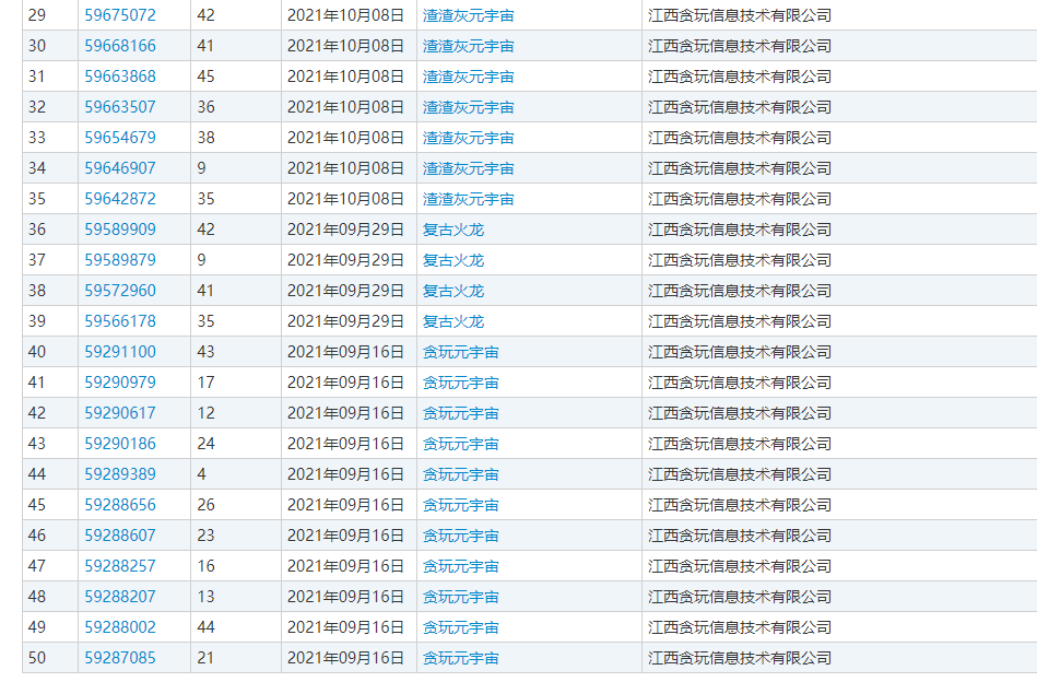 公開資料顯示,《貪玩藍月》由浙江盛和網絡科技有限公司研發,江西貪玩信息技術有限公司發行運營。啓信寶頁面顯示,江西貪玩信息技術有限公司主要品牌是貪玩遊戲,《貪玩藍月》和《傳奇世界》等遊戲是其主要IP。