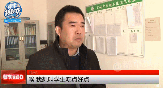《都市報道》就此事採訪了戚城中學校長王校長,面對記者“學校這餐到底是咋回事”的提問,王校長雙手交握,發出長長一聲嘆息,隨後就忍不住掩面痛哭了起來。