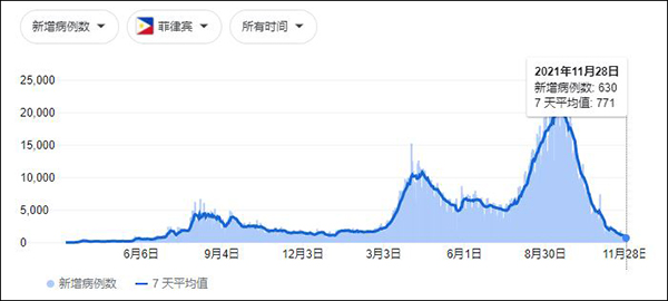 據美國約翰斯·霍普金斯大學(JHU)數據顯示,菲律賓11月28日新增630例確診病例,新增156例死亡病例;而在過去一週,該國共新增5397例確診病例,日平均新增771例。