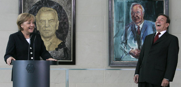 按照傳統,前任總理的肖像都由現任總理來“揭幕”。2007年,默克爾總理為卸任兩年的施羅德畫像上牆做主持。