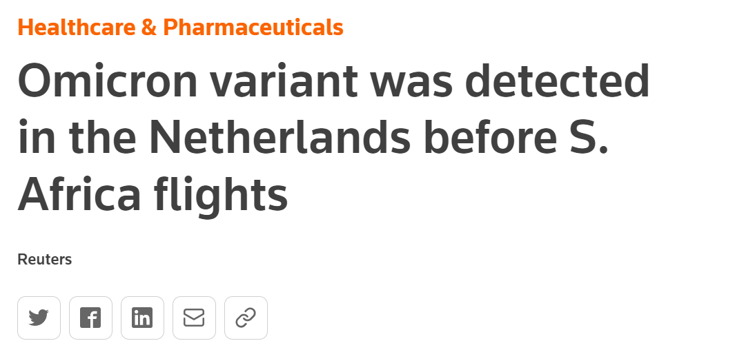 荷蘭發現早就有“奧密克戎”,但首個上報的是南非