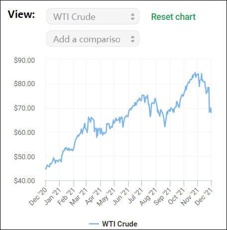 不過值得一提的是,本月26日,受南非報告高傳染性新冠變異毒株“奧密克戎”的影響,國際油價大幅跳水,WTI原油跌破70美元,日內最大跌幅超過了10%。