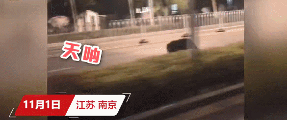11月17日,安徽宣城,4只大野豬領30只小豬崽排隊過馬路