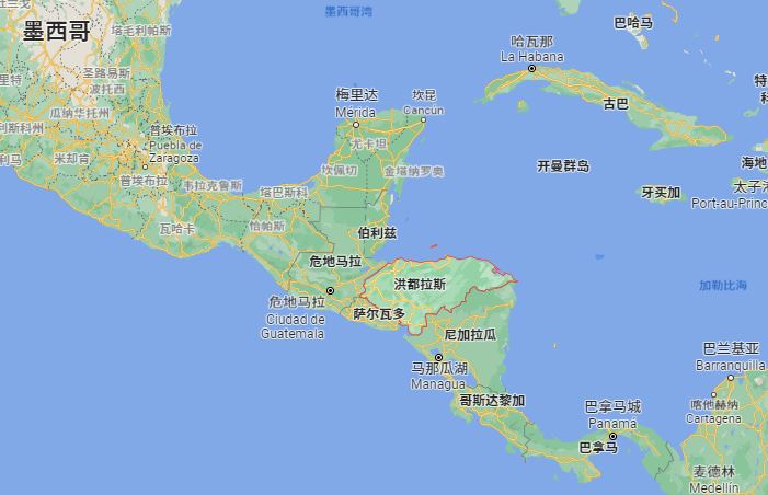 洪都拉斯地理位置 截圖自谷歌地圖