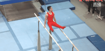 鄒敬園的雙槓創意動作,活潑可愛。