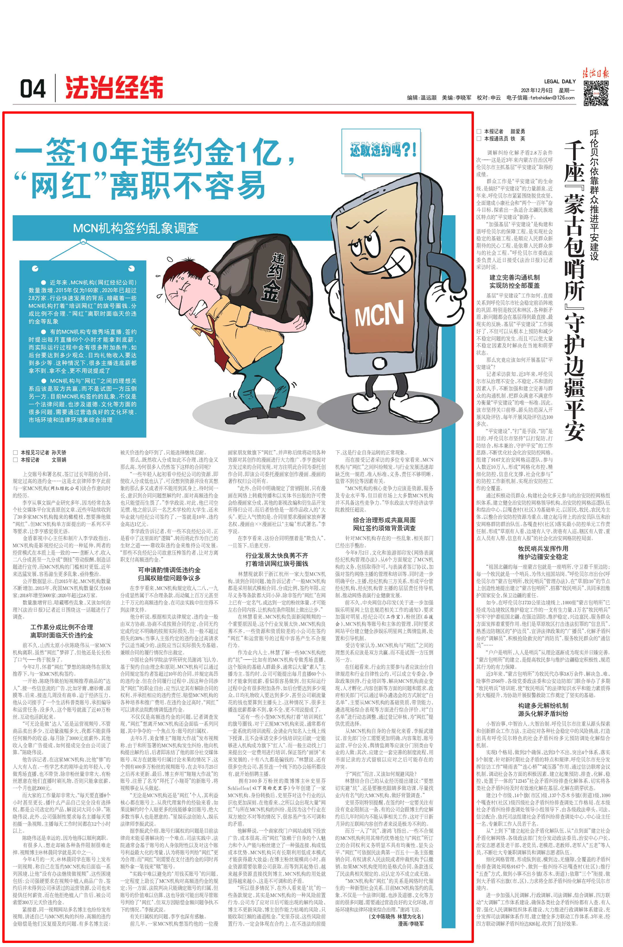 上交賬號和署名權、簽訂過長年限的合同、規定過高的違約金……這是北京律師李亨此前與一家MCN機構(網紅經紀公司)談合作意向時的經歷。