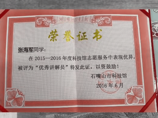從踏進學校的那一刻起,張海軍同學在老師的引導下,對自己提出了明確的要求,為自己樹立了崇高的人生理想和遠大發展目標,他清晰地認識到自己身上擔負的責任。在擔任班級體育委員期間,積極配合老師的工作,不折不扣地完成老師交給的各項任務,帶領大家積極鍛鍊身體。他為人熱情、助人為樂,多次參加慰問孤寡老人、關愛殘疾兒童和“4點半課堂”為留守兒童講課活動,是第一個加入青年志願者協會的大一新生。