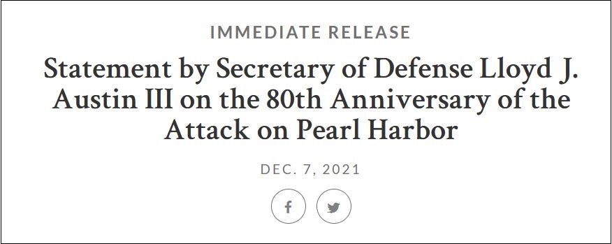 除了美國海軍,美國總統拜登、國防部長奧斯汀,以及國防部有關珍珠港事件紀念日的數份聲明中,也幾乎沒有提到過日本。