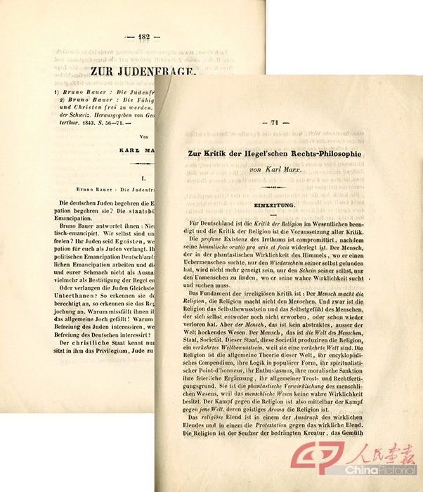 《論猶太人問題》和《<黑格爾法哲學批判>導言》(圖片來源:人民畫報)