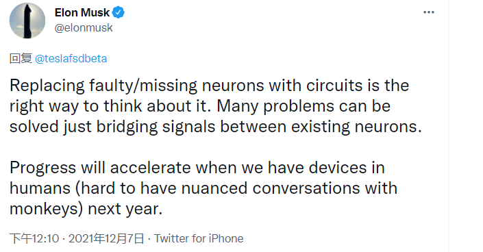 2020年8月29日,馬斯克在活豬身上演示了“腦機接口”技術,實現了對豬的行為的精準預測;2021年4月9日,Neuralink展示了猴子用腦電波控制球拍,使用“意念”玩模擬乒乓球遊戲的畫面。