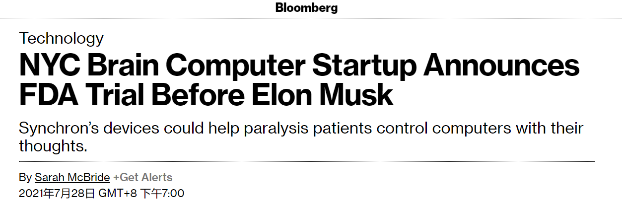 在馬斯克之前,已經有公司成功“搶跑”。今年7月,一家名為Synchron的生物技術公司獲得了FDA的批准,可以開始人體實驗。有評論認為,如果一切順利,Synchron產品有望在3-5年內上市。